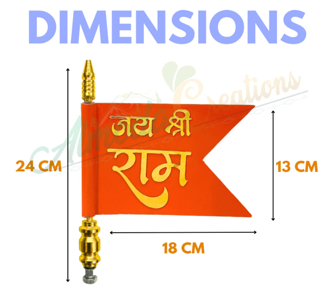 “Enhance your car or bike with this beautifully designed 3D Printed Jai Shree Ram Cut Flag, mounted on a sturdy big golden metal rod. Crafted with precision, this religious vehicle décor accessory is a universal fit for all cars and bikes, making it easy to install on the bonnet. The golden finish adds a touch of elegance while proudly showcasing your devotion. A perfect blend of spirituality and style, this flag is durable, eye-catching, and ideal for everyday use or festive occasions.