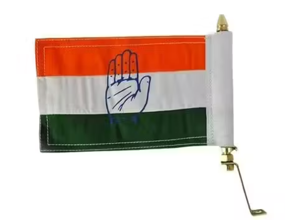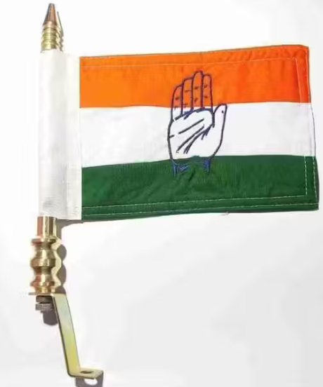 Congress Party Flag with Golden Metal Rod – Thick Cotton Cloth Flag for All Car Models – Dashboard and Bonnet Mount – Political Car Accessory